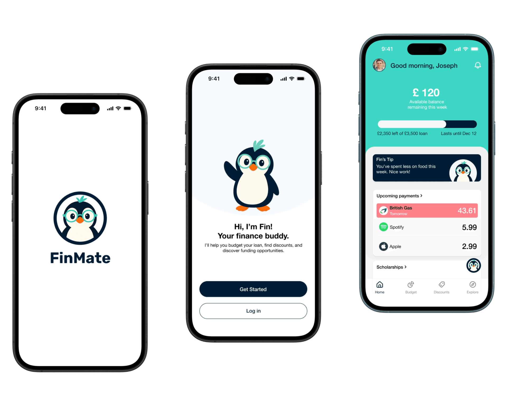 Finmate is an all-in-one student-first finance app designed to address the unique challenges of student money management. It helps students stretch their loans further with AI-powered budgeting tailored to termly payments and simplifying access to scholarships, grants and student discounts. The app empowers students to budget effectively and reduce financial stress to build healthier financial habits during university and beyond.
